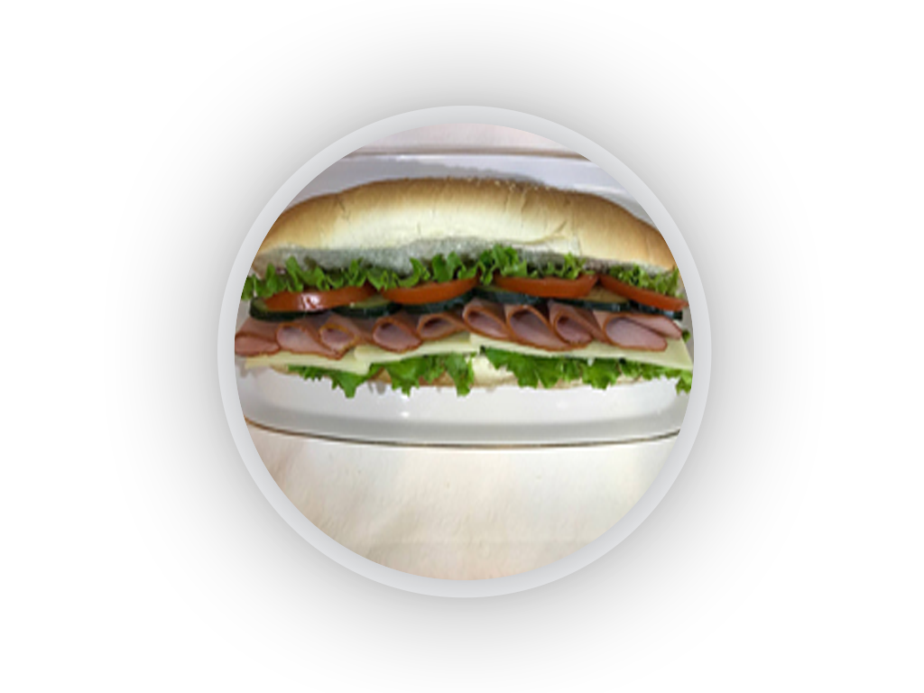 Sendvic sa pecenicom (kifla, namaz, pečenica, kačkavalj, zelena salata, paradajz, krastavac)